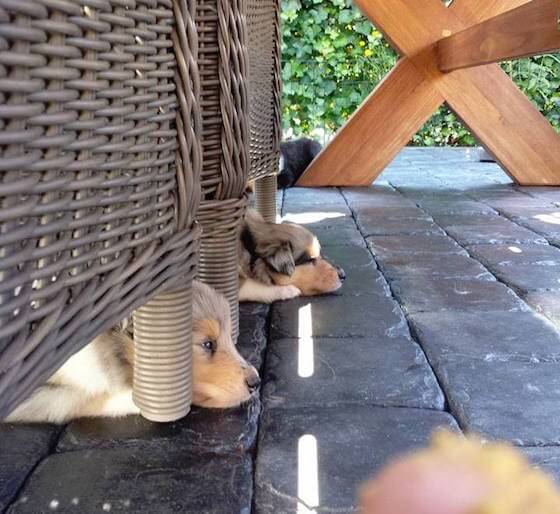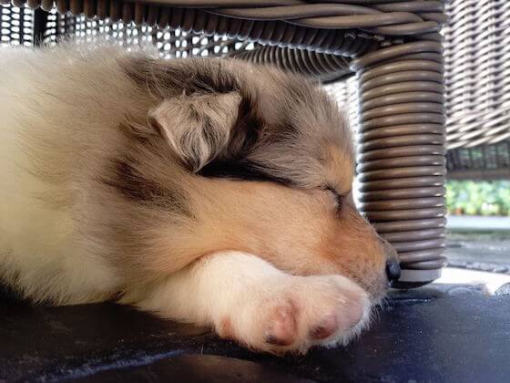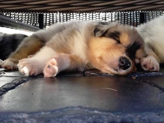 Nadat de pups flink wat herrie hebben gemaakt in de tuin en flink hebben gespeeld zijn ze helemaal uitgeput, tijd voor een dutje dus!