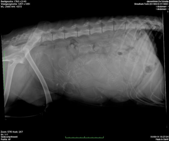 Na een röntgenfoto weten we het zeker. Tutti zal eind juni 5 puppy’s krijgen!